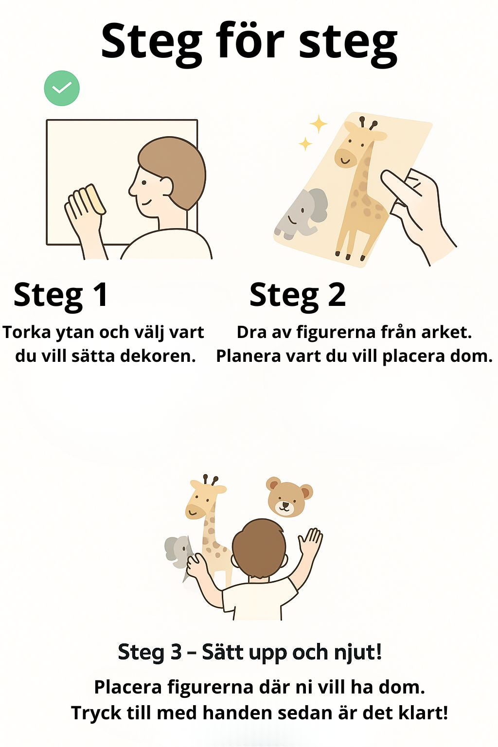 Vi använder högkvalitativ vinyl med matt yta och självhäftande baksida, trygg för väggar och lätt att ta bort utan skador.