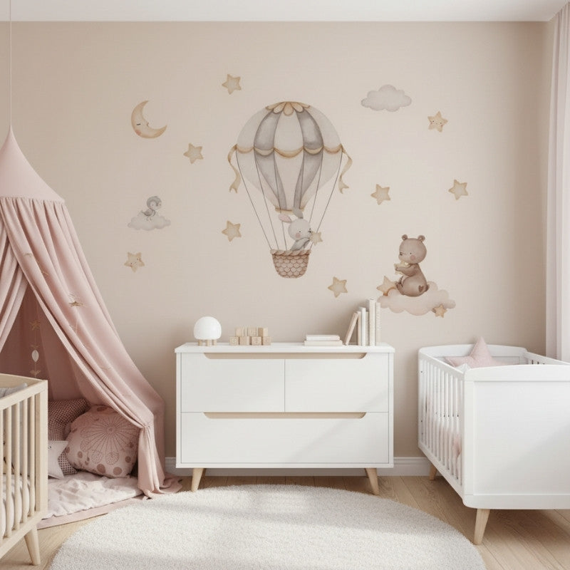 Ja! Våra väggdekorer passar lika bra över skötbordet, på garderoben som bakom sängen eller i barnrummet. Snyggt och enkelt att skapa en personlig känsla.