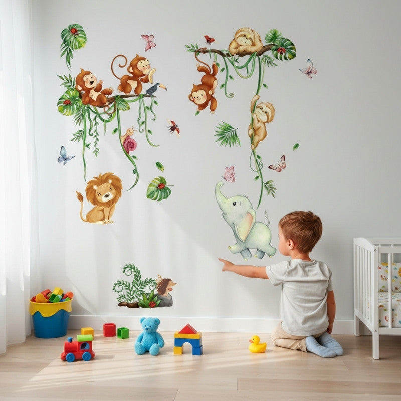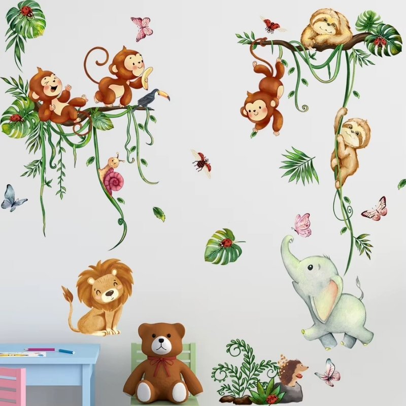 Väggdekor med djur i djungeln – Lekfull inredning för nyfikna barn